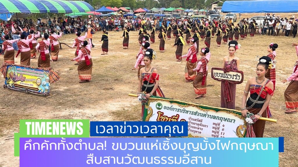 ขบวนแห่เซิ้ง ประเพณีงานบุญบั้งไฟ ตำบลกฤษณา อำเภอขุขันธ์ จังหวัดศรีสะเกษ ชาวบ้านนำการละเล่นสนุกๆ ออกมานำเสนอ แสดง ถวายพระยาแถน ที่เป็นรากเหง้าของคนอีสาน เพื่อขอฝนตกต้องตามฤดูกาล วันที่ 24 เมษายน 2569 ที่ ทุ่งกว้างสาธารณะ บ้านพรหมแสง ตำบลกฤษณา อำเภอขุขันธ์ จังหวัดศรีสะเกษ นาย วันชัย ศรีบุญเรือง นายก อบต.กฤษณา ร่วมกับ สมาชิกสภาฯ อบต., สภาวัฒนธรรมตำบลกฤษณา, เจ้าหน้าที่ – พนักงาน อบต., ผู้นำท้องที่ – ท้องถิ่น พี่น้องประชาชน ในเขตตำบลกฤษณา ได้ร่วมกันจัดงาน ประเพณีงานบุญบั้งไฟ ประจำปี 2569 โดยมีหมู่บ้านที่รวมตัวกันเป็นโซน เป็นเขต จำนวน 4 โซน จาก จำนวน 13 หมู่บ้าน จัดขบวนแห่เซิ้ง ขบวนฟ้อนรำ และการละเล่นแบบโบราณ…