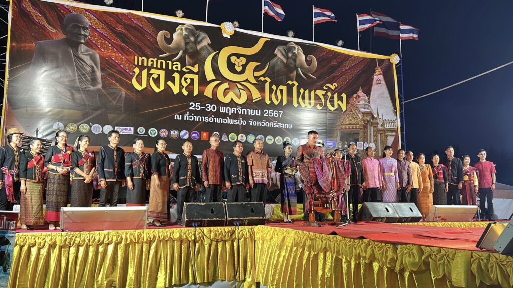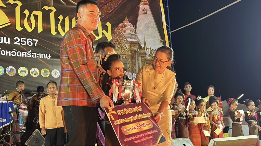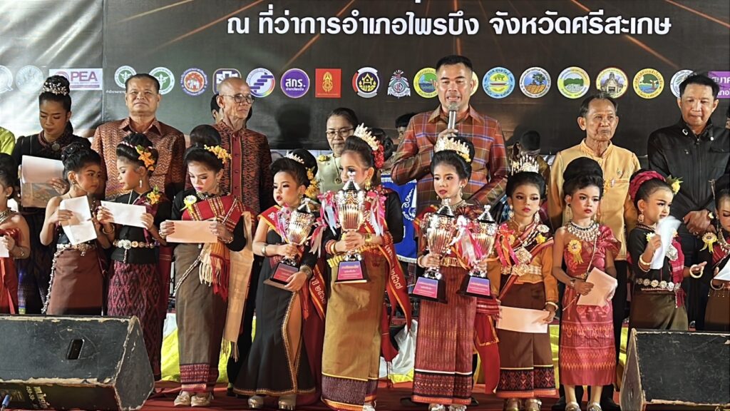 คืนของวันที่ 28 พฤศจิกายน 2567 ที่ หน้าที่ว่าการอำเภอไพรบึง จังหวัดศรีสะเกษ เวทีกลางคืนนี้คณะกรรมการจัดงาน ของดี 4 เผ่าไทไพรบึง ระหว่าง วันที่ 25 – 30 พฤศจิกายน 2567 ร่วมกับคณะกรรมการศึกษา ระดับประถมศึกษา ในเขตอำเภอไพรบึง โดยวันนี้ ได้จัดให้มีการประกวดหนูน้อย “ยุวชนธิดา 4 เผ่าไทไพรบึง” โดยเปิดโอกาสให้ผู้ปกครอง ที่มีความพร้อม นำลูก – หลาน ที่มีอายุระหว่าง 5 – 6 ขวบ ในสังกัดโรงเรียนประถมศึกษาในเขตอำเภอไพรบึง มาสมัครเข้ารับการประกวด เพื่อแสดงออกถึงความกล้า ความมั่นใจ หากรักที่จะเดินเข้าสู่เวทีใหญ่ ของการประกวดสาวงาม ในเวทีต่างๆ ในอนาคต เวทีนี้ แม้ปีนี้จะเป็นการจัดเป็นปีแรก ก็จะสามารถนำฝันของน้องๆ ไปในอนาคตได้ ซึ่งในคืนนี้ปรากฏว่า มีผู้ปกครอง พาหนูน้อย มาสมัครเข้าร่วมเวทีประกวด จำนวน 12 คน แต่งการด้วยชน 4 ชนเผ่าไทไพรบึง เพื่อปลูกฝังให้รักในชาติพันธุ์ของตนเองตั้งแต่เด็ก มีความกตัญญูต่อชนเผ่า ต่อบรรพบุรุษ ไม่ว่าจะเป็นเผ่า ส่วย – เขมร – ลาว และเผ่าเยอ มาขึ้นเวที เดินประชันความงามกัน 3 รอบ พร้อมรับดอกไม้จากกองเชียร์ เพื่อค้นหาขวัญใจยุวธิดา 4 เผ่าไทไพรบึง ซึ่งในรอบแรก คณะกรรมการ เปิดโอกาสให้ยุวธิดา ได้เดินโชว์ความงาม โพสต์ท่าบนเวทีใหญ่ กันอย่างเต็มที ส่วนในรอบที่ 2 ได้เปิดโอกาสให้น้องๆ ยุวธิดา ได้กล่าวแนะนำตัว และอ้อนขอคะแนนจากคณะกรรมการกันอย่างเต็มที ส่วนรอบที่ 3 รอบตัดสิน ได้ให้น้องๆ ทุกคนได้ตอบคำถามคนละ 2 ข้อ โดยส่วนใหญ่จะถามว่า คืนนี้ สวมใส่ชุดอะไรมาประกวด เพื่อยืนยันว่าน้อง รู้จักชุดที่ตนเองสวมใส่ เป็นการยืนยันตัวตนว่าเป็นลูกหลานของชาวไพรบึง ที่มีชนเผ่าอาศัยอยู่ครับ ทั้ง 4 เผ่าด้วย