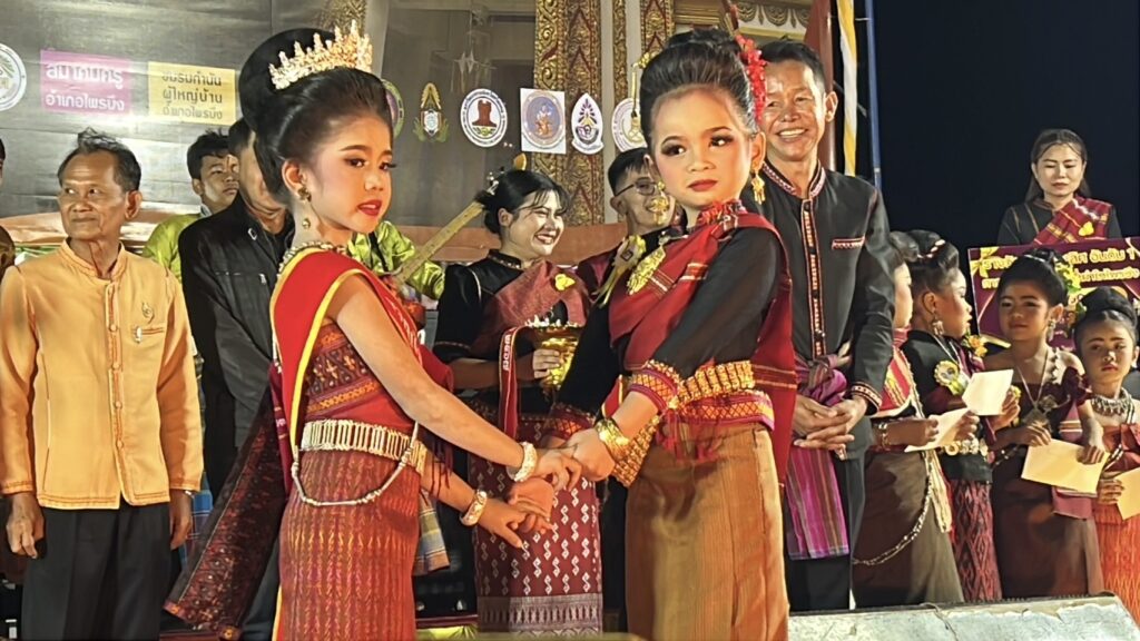 กองเชียร์กรี๊ดสนั่น ลูกหลาน 5 – 6 ขวบ ลงสมัครประกวดยุวธิดา 4 เผ่าไทไพรบึง ทั้งการเดิน ท่วงท่า การโพสต์ท่า การตอบคำถาม การแนะนำตัว ไม่แพ้สาวงามที่ประกวดตามเวทีใหญ่ เรียกดอกไม้ได้เต็มหอบ เต็มกำมือด้วย