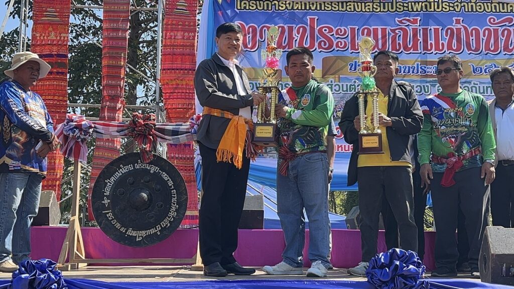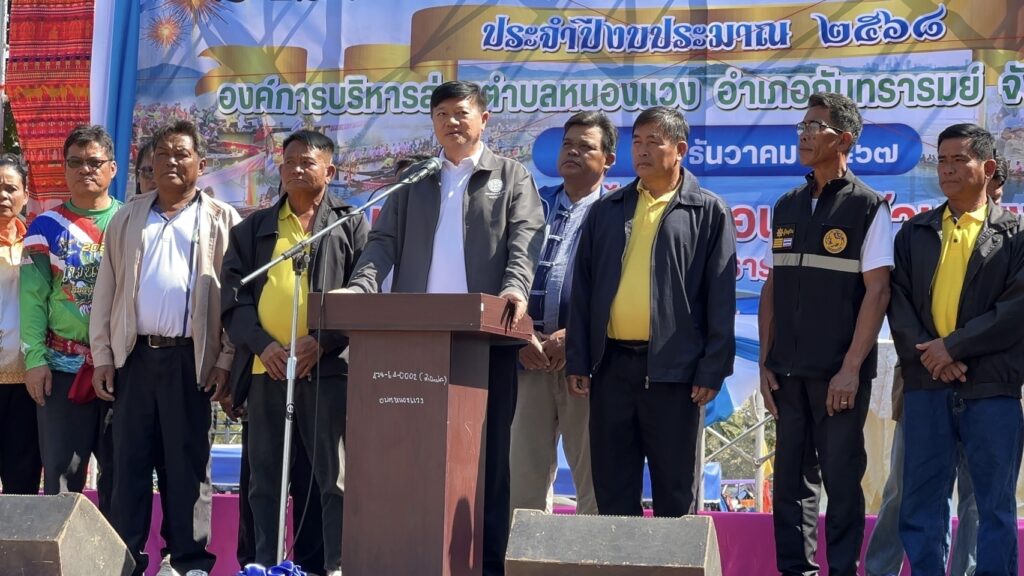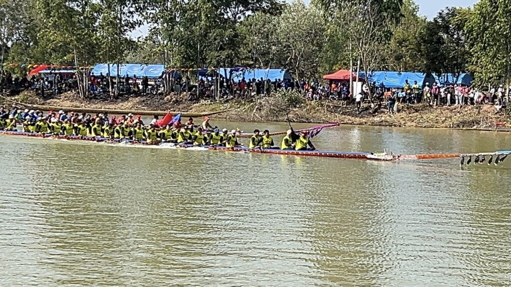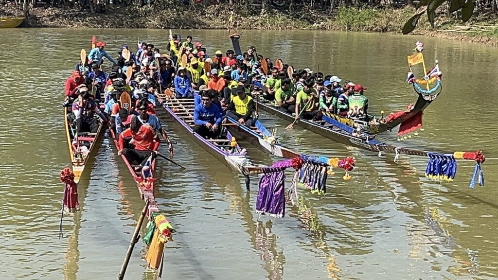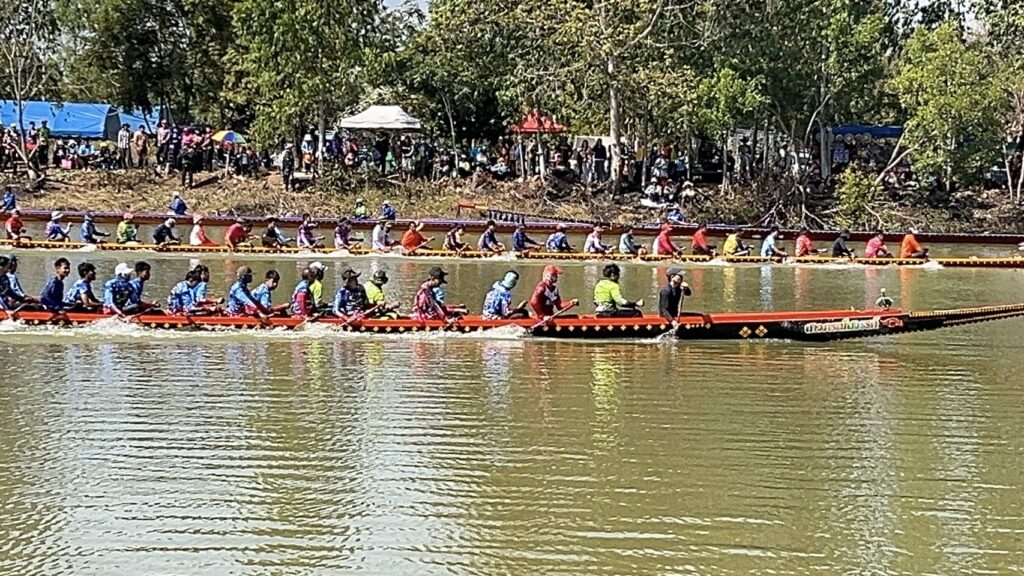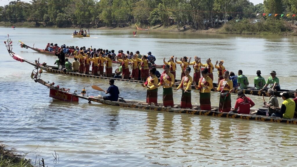 วันที่ 22 ธันวาคม 2567 ที่ อ่างเก็บน้ำ ร่องน้ำคำ บ้านแสงใหญ่ ตำบลหนองแวง อำเภอกันทรารมย์ จังหวัดศรีสะเกษ ชาวบ้านได้ร่วมกัน ให้การต้อนรับ นักท่องเที่ยวจากทั่วสารทิศ ที่เป็นแฟนพันธุ์แท้ในการแข่งขันเรือยาวโบราณ เพราะวันนี้ถือเป็นการแข่งขันเรือยาวสนามสุดท้าย ก่อนหยุดฤดูกาลแข่งเรือยาวของจังหวัดศรีสะเกษ ซึ่งวันนี้ถือเป็นการแข่งขันเรือยาว พิเศษ ที่จัดขึ้นเป็นประจำทุกปี โดยการจัดแข่งขันเรือยาวโบราณ ขนาด 30 – 40 ฝีพาย ที่เรือมีอายุ 157 ปี ที่เป็นตำนานของคุ้งน้ำในแถบภาคอีสาน นั้นก็คือ เรือท้าวผ่าน และเรือนางนาคแก้ว โดยเรือท้าวผ่าน เป็นเรือขุดโบราณ จากไม้ตะเคียนทั้งลำ ในช่วงปี พ.ศ.2410 สมัยขุนบริบาล เป็นกำนันตำบลหนองแวง ขุนศักดิ์ดา เป็นผู้ใหญ่บ้านแสงใหญ่ คนแรก มีมติให้มีแข่งพายเรือ เพื่อคัดเลือกเอามาใช้ประจำหมู่บ้าน ที่สมัยนั้นใช้การเดินทางโดยทางเรือ ตามลำน้ำมูล และลำน้ำชี ชาวบ้านจึงได้เดินทางไปซื้อมาจาก อำเภอโขงเจียม เมื่อปี พ.ศ.2430 ซึ่งเรือขุดท้าวผ่าน ได้มีการขุดเป็นเรือสำเร็จไว้แล้วตั้งแต่ปี พ.ศ.2410 ส่วนเรือนางนาคแก้ว เป็นเรือที่ขุดจากต้นตะเคียนทั้งต้นเช่นกัน โดยเรือขุดอยู่ที่ บ้านท่าลาด อำเภอเสลภูมิ จังหวัดร้อยเอ็ด ขุดเสร็จเมื่อปี พ.ศ.2440 โดยหลวงพ่อจารย์ครูศรี ภาดี เป็นเจ้าอาวาสวัดบ้านแสงใหญ่ สมัยนั้น ได้เดินทางพร้อมมัคถายกวัด ไปซื้อมาในราคา 3,000.-บาท นำมาสร้างความสามัคคีให้กับชุมชน ที่ได้มาฝึกพายเรือ มาลงพายเรือ ไปร่วมแข่งขันหลายสนาม ได้รางวัล 1 – 3 มาโดยตลอด และมีการนำเรือมาบำรุง รักษา ให้คงสภาพที่สามารถใช้การได้ตราบจนทุกวันนี้ ซึ่งวันนี้เรือทั้ง 2 ลำ ที่ถือว่าเป็นเรือโบราณที่มีอายุมากที่สุด ได้มาลง ร่วมทำการแข่งขัน เรือยาวโบราณ 30 – 40 ฝีพายด้วย ซึ่งวันนี้มี นายสุรชาติ ชาญประดิษฐ์ ผู้แทนราษฏร เขต 2 จังหวัดศรีสะเกษ พรรคเพื่อไทย เดินทางมาเป็นประธานเปิดการแข่งขันด้วย