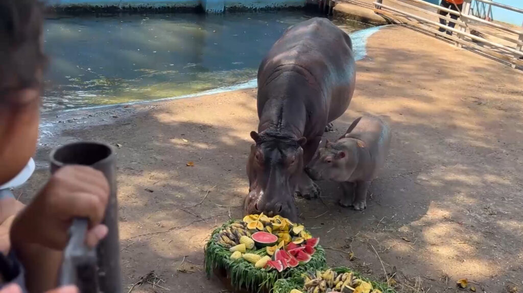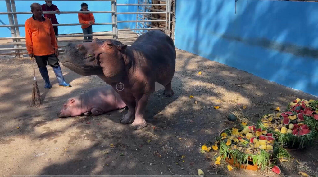 น้องหอมแดง ลูกฮิปโปโปเตมัสเกิดใหม่ วันนี้อายุครบ 4 เดือน อ้วนอวบจ่ำหม้ำ น่ารัก ฉลองครบรอบวันเกิด มีเพลงหอมแดงเป็นของตนเอง พี่ๆ มาอวยพรวันเกิด เต้นเพลงหอมแดง น้องตื่นมาทานเค้กผลไม้ ชอบทานแตงโม
