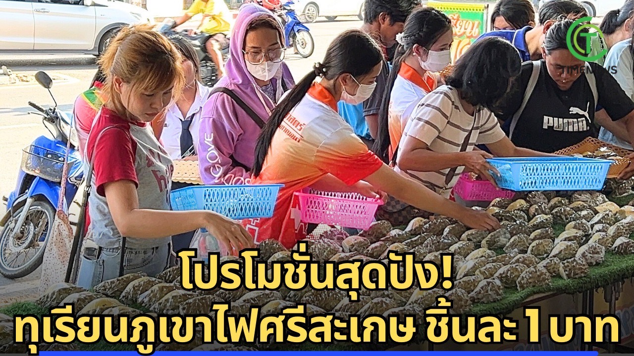 โปรโมชั่นสุดปัง ทุเรียนภูเขาไฟศรีสะเกษ เปิดโปรโมชั่น จำหน่ายชิ้นละ 1.-บาท นักศึกษา ประชาชน ที่มีงบน้อยแต่อยากทานก็จะได้ทาน แต่หยิบได้ คนละไม่เกิน 2 ชั้น นอกนั้นก็เพิ่มได้อีก ชิ้นละ 5.-บาท และชิ้นละ 10.-บาท