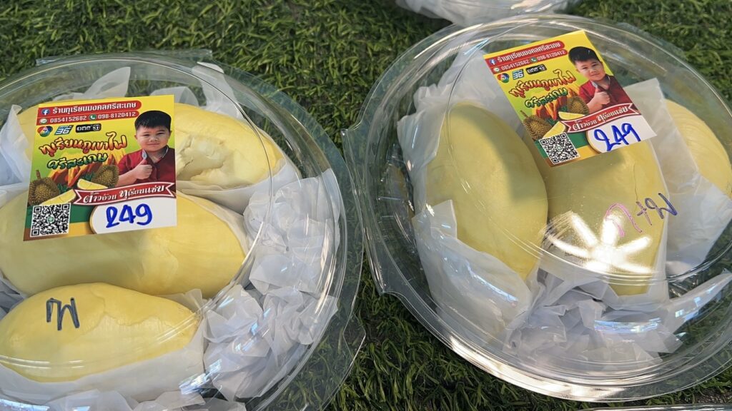 อยากไรก็ดี หากลูกค้าท่านใดต้องการทานทุเรียนแบบพรี่เมียม ก็สามารถเลือกซื้อไปได้ในราคากล่องละ 499.- บาท หรือ 249.-บาท หรือจะเลือกซื้อเป็นลูก ก็เพียงราคาลูกละ 89.-บาท และ99.-บาท เท่านั้น