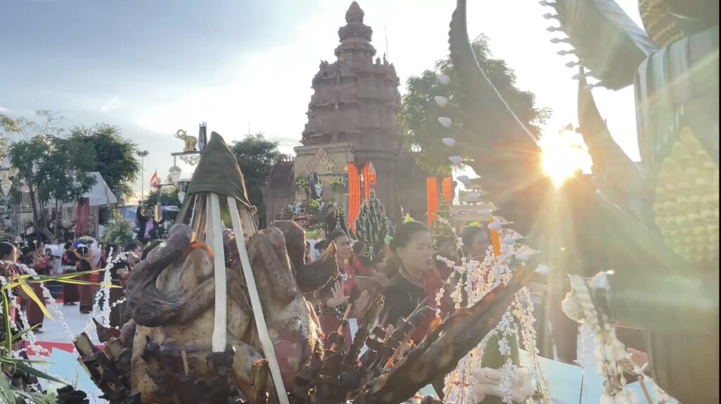 บ่ายของวันที่ 12 กันยายน 2568 ที่ หน้าลาดพระยาไกรภักดีศรีนครลำดวน ตากะจะ พ่อเมืองคนแรกของจังหวัดขุขันธ์ ที่มีประวัติการก่อตั้งเมืองมายาวนานกว่า 1 พันปี ในสมัยอาณาจักขอมโบราณ พร้อมกับชื่อของเจ้าเมืองขุขันธ์ ท่านแรกในยุคขอมโบราณคือ พระก็อมรอแตงชคตศรีขัณฑเรศวร แห่งเมืองสด๊กโคกขัณฑ์ ผ่านมาถึงสมัยกรุงศรีอยุธยาตอนปลาย ตรงกับรัชสมัยของพระเจ้าเอกทัศน์ ในปีพุทธศักราช ๒๓๐๒ ตาสุ หรือ ตาไกร ที่ชาวบ้านทั่วไปเรียกว่า ตากัญจะฮฺ (ตากะจะ) เนื่องจากท่านเป็นนักรบรูปร่างสูงใหญ่ เป็นหัวหน้าชาวเขมรป่าดง ร่วมกับเชียงขันธ์ ผู้น้อง แห่งหมู่บ้านปราสาทสี่เหลี่ยมโคกลำดวน อันเป็นชุมชนโบราณดั้งเดิมของเมืองขุขันธ์ ได้ร่วมกันกับทหารเอกคู่พระทัย คือทองด้วง (อดีตล้นเกล้า ร.1) จับพระยาช้างเผือก ของสมเด็จพระเจ้าเอกทัศ แห่งกรุงศรีอยุธยา ที่ได้แตกโรงหนีออกจากโรงช้างเตลิดเข้าป่าโดยมุ่งหน้ามาทางทิศตะวันออกสู่ป่าเขตเทือกเขาพนมดงเร็ก ได้ออกติดตามจนพบ สามารถจับพระยาช้างเผือกได้ และตามคณะนำส่งถึงกรุงศรีอยุธยา พระเจ้าอยู่หัวฯ จึงโปรดเกล้าฯ พระราชทานบรรดาศักดิ์ให้ ตากะจะ หรือตาไกร ต่อมา ตากะจะ ได้รับพระราชทานบรรดาศักดิ์เป็น พระยาไกรภักดีศรีนครลำดวน เจ้าเมืองขุขันธ์ ท่านแรกในยุคบั้นปลายกรุงศรีอยุธยา ในปีพุทธศักราช ๒๔๕๙ โปรดเกล้าฯ เปลี่ยนชื่อเมืองขุขันธ์ เป็นชื่อ จังหวัดขุขันธ์ และในปีพุทธศักราช ๒๔๘๑ เปลี่ยนชื่อจังหวัดขุขันธ์ เป็นชื่อจังหวัดศีร์ษะเกษ พร้อมการสืบสานประเพณีงานบุญเดือน 10 และเรียกต่อๆ กันมา ว่า “ประเพณีแซนโฏนตา บูชาหลักเมือง ลือเรื่องกล้วยแสนหวี” มาจนทุกวันนี้ พอเกิดเหตุการณ์ความไม่สงบระหว่างไทย กับกัมพูชา ชาวเขมารมาอ้างว่า ประเพณีแซนโฏนตา เป็นของชาวเขมร ซึ่งสภาวัฒนธรรมอำเภอขุขันธ์ บอกว่าเป็นประเพณีของชนเผ่าเขมร ที่มาจากขอมโบราณในแถบนี้ ไม่ใช้ของเขมร อย่าคิดมาเครม
