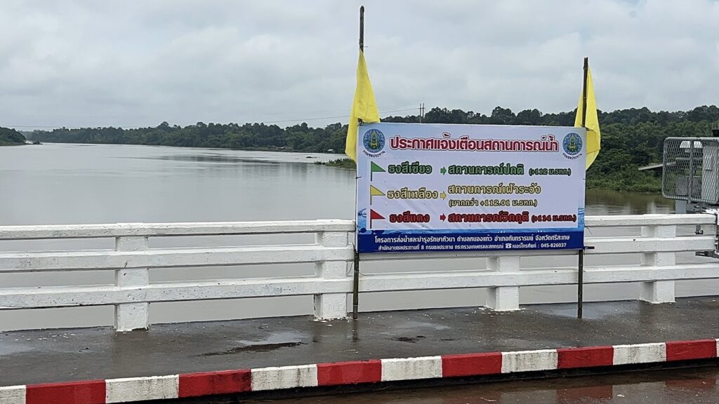โดย นายจำรัส สวนจันทร์ ผู้อำนวยการโครงการชลประทานจังหวัดศรีสะเกษ ยังได้ชี้แจงเพิ่ม ว่า วันนี้เราได้ติดตามสถานการณ์และรับแจ้งจากกรมอุตุฯ ว่า ฤดูฝนปีนี้น่าจะเลื่อนออกไป ปกติจะถึงเดือนตุลาคม แต่ปีนี้ฤดูฝน อาจจะยาวไปถึงเดือนพฤศจิกายน 2568 และยังจะมีพายุเข้ามาอีก 2 ลูก ที่ต้องเฝ้าระวังโดยจะเข้าไทย ประมาณ 28 – 29 กันยายนนี้ และจะมาที่ภาคอีสานด้วย ซึ่งจะกระทบต่อตามแนวชายแดน โดยอ่างเก็บน้ำตามแนวชายแดน 16 แห่ง ตอนนี้มีน้ำล้นตลิ่งแล้ว 12 แห่ง ซึ่งวันนี้เป็นวันแรกของลำน้ำห้วยทับทัน ที่เกินปริมาณกักเก็บล้นตลิ่งซึ่งได้แจ้งข่าวเตือนพี่น้องประชาชนไปแล้ว ตั้งแต่เมื่อคืน ถ้าเกิดจุดไหนอันตราย ทางกรมชลประธาน ก็จะขึ้นธงแดง แต่ตอนนี้มีทองเหลือง ขึ้นแล้วหลายแห่งด้วยกัน