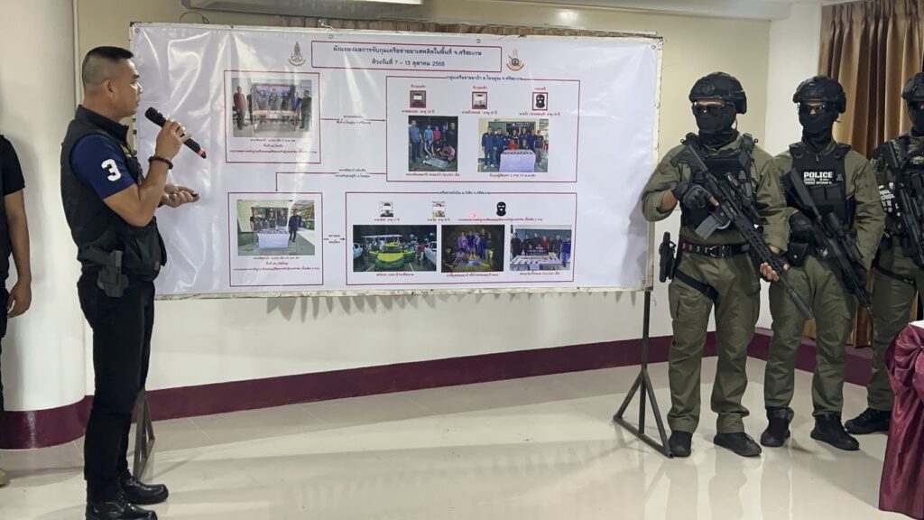 วันที่ 15 ตุลาคม 2568 ห้องปฎิบัติการพิเศษ สำนักงานตำรวจภูธรจังหวัดศรีสะเกษ พลตำรวจตรี ศุภชัย ศักรินพานิชกุล ผู้บังตคับการตำรวจภูธรจังหวัดศรีสะเกษ คนใหม่, นายสุริยา บุตรจินดา รองผู้ว่าราชการจังหวัดศรีสะเกษ หัวหน้าส่วนที่เกี่ยวข้อ ผอ.การประถม – มัธยมศึกษา, ผบ.เรือนจังหวัดศรีสะเกษ เจ้าหน้าที่ชุดพิทักษ์นครลำดวน238 และเจ้าหน้าที่ชุดตอบโต้อาชญากรรม และสนับสนุนการทำงานแก้ไขปัญหาชายแดนไทยจังหวัดศรีสะเกษ หรือ ตำรวจสวาท ที่ผู้บังคับการตำรวจภูธรศรีสะเกษ คนใหม่จัดตั้งขึ้น จากการคัดเลือกตำรวจ ผู้ที่ผ่านอบรมพิเศษ ในเรื่องหลักสูตรการจู่โจม ช่วยเหลือตัวประกัน เข้าจับกุมเฉพาะกิจ รวมทั้งการคุ้มกันผู้บริหารระดับสูง โดยล่าสุด ร่วมกับหน่วยพิทักษ์นครลำดวน238 พิฆาตทรชนคนค้ายาอีสานใต้ สกัดจับกุม 2 สามีภรรยา ที่เปลี่ยนรูปแบบการค้า ด้วยการนำรถยนต์แท็กซี่มาเป็นพาหนะในการขนส่งยาเสพติด ชนิดยาบ้า จำนวน 122,000 เม็ด จับกุม ก่อนทำการขยายผลต่อได้ทั้งเครือช่าย