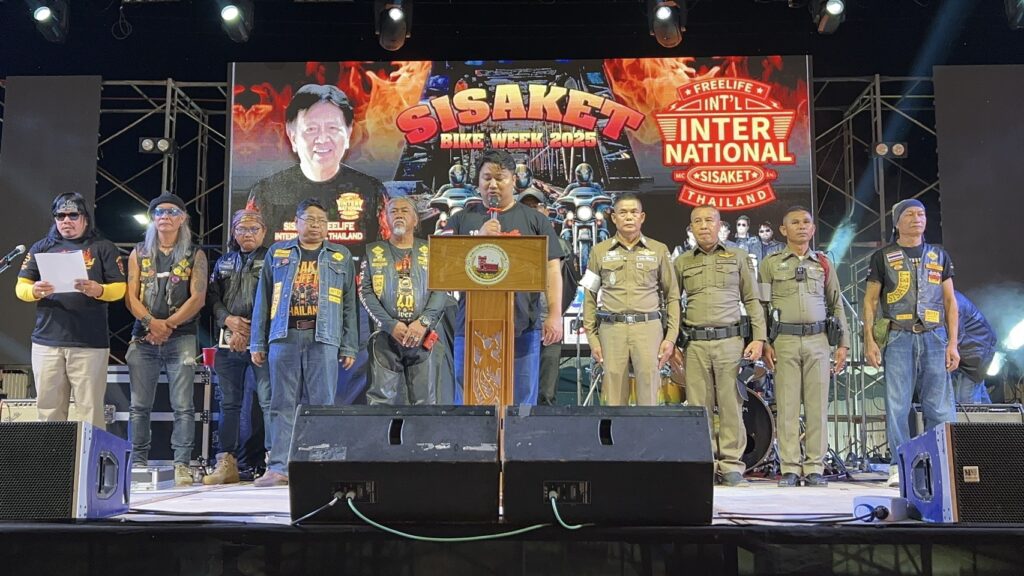 รองนายก อบจ.ศรีสะเกษ เปิดงาน SISAKET BIKE WEEK2025 สุดคึกคัก โดยมี นักท่องเที่ยว ทั้งชาวไทย ชาวต่างชาติ นักขับมอเตอร์ใหญ่ ช็อปเปอร์ จากพัทยา จากภาคใต้ จากภาคเหนือ ทั่วประเทศ ขับรถมอเตอร์ไซต์ มาร่วมงาน