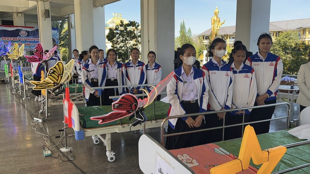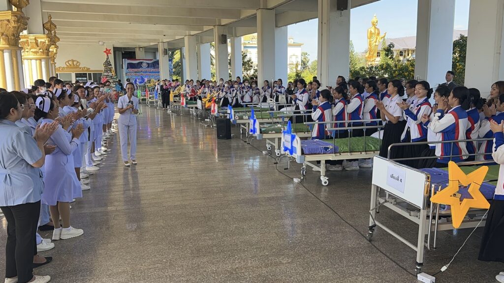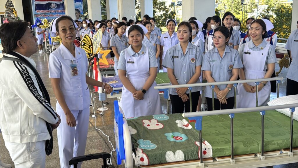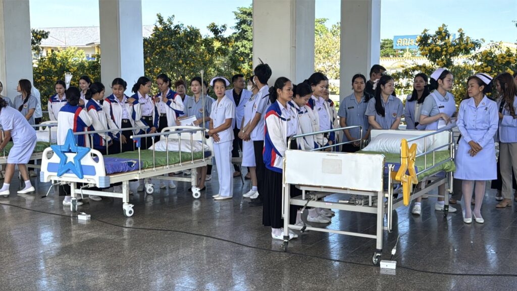วันที่ 15 ธันวาคม 2568 ที่ มหาวิทยาลัยเฉลิมกาญจนา แห่งหนึ่งในจังหวัดศรีสะเกษ ที่มีการเปิดการเรียนการสอน ทั้งคณะพยาบาลศาสตร์ และคณะสาธารณสุขศาสตร์ มีนักศึกษารวมกัน ทั้ง 2 คณะ ในระดับ 4 ชั้นปีการศึกษา มากกว่า 100 คน โดยวันนี้ได้มีนักศึกษา จำนวนกว่า 100 คน ได้สมัครที่จะมาคอยดูแลผู้ป่วย เยียวยา ด้านการพยาบาล ทั้งด้านจิตใจ และด้านสุขภาพกาย โดยมีคณะครู – อาจารย์ ด้านการพยาบาล คอยดูแลกำกับอีกชั้น พร้อมเปิดอาคารเรียน ให้เป็นที่พักผ่อน พักฟื้น เสริมอาหาร ข้าว – น้ำดื่ม ตลอด 3 มื้อ ฟรี มีเตียงสำหรับผู้ป่วย ผู้เปราะบาง ทั้งแบบธรรมดา และแบบสีสันผีเสื้อกางปีกเข้าออกได้ เพื่อการผ่อนคลาย กับความร่วมมือกับทางจังหวัดศรีสะเกษ ที่เปิดศูนย์พักพิงแก่ผู้อพยพ ทั้ง 519 ศูนย์ แต่ด้วยความที่มีผู้อพยพมามากกว่า 90,000 คน จึงเกิดความแออัด หากมีผู้ป่วยก็จะรุกลามต่อเนื่องกันได้ง่าย ขยายวงกว้าง