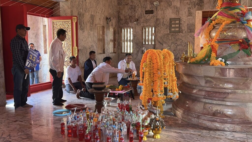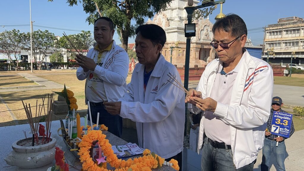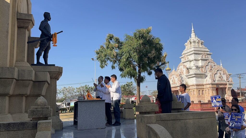 แกนนำพรรครวมไทยสร้างชาติ บุกตลาดอำเภอขุขันธ์ เอาฤกษ์ดี ไหว้ศาลหลักเมืองขุขันธ์ ก่อนไปไหว้ขอพรพระยาไกรภักดีศรีนครลำดวน เจ้าเมืองคนแรกของจังหวัดศรีสะเกษ ก่อนตระเวนหาเสียงแถลงนโยบาย
