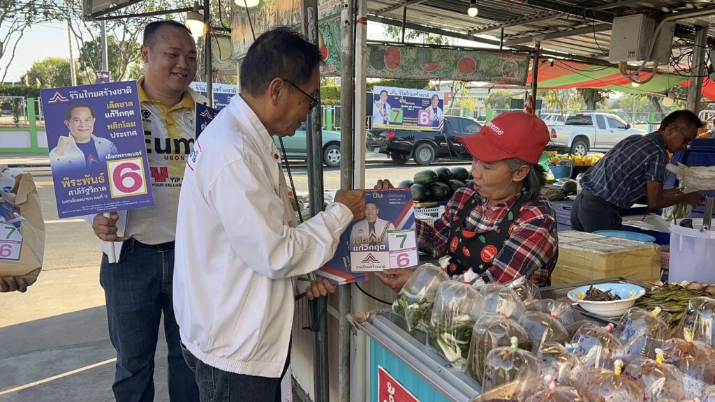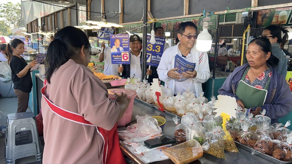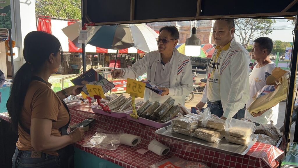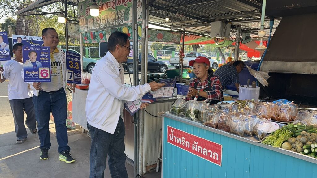 จากนั้นผู้สมัคร สส.เขต 6 นายปิ่น นันทะเสน ผู้สมัครหมายเลข 7 ได้เดินแจกใบปลิว แถลงนโยบายพรรครวมไทยสร้างชาติ แก่พ่อค้า – แม่ค้า ผู้ที่มาจับจ่ายซื้อหากับข้าวในช่วงเย็นที่ตลาดเทศบาลตำบลเมืองขุขันธ์ และเดินเท้าไปตามถนนสายหลักๆ ในเขตเทศบาลเมืองขุขันธ์ ด้วย