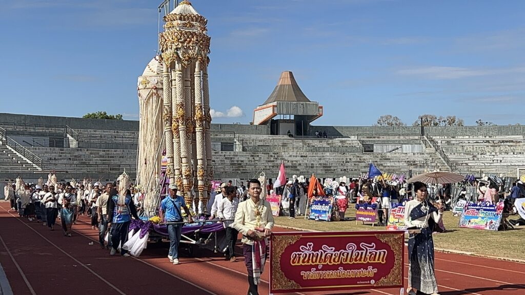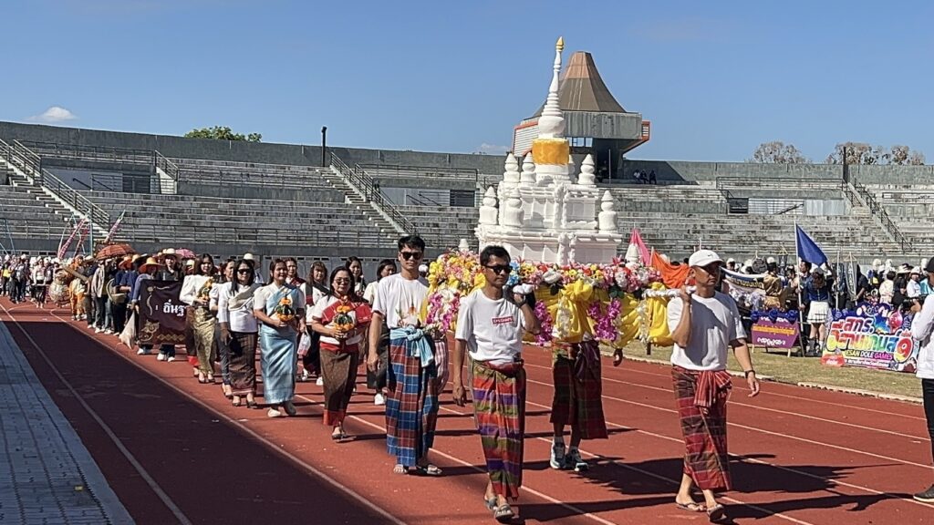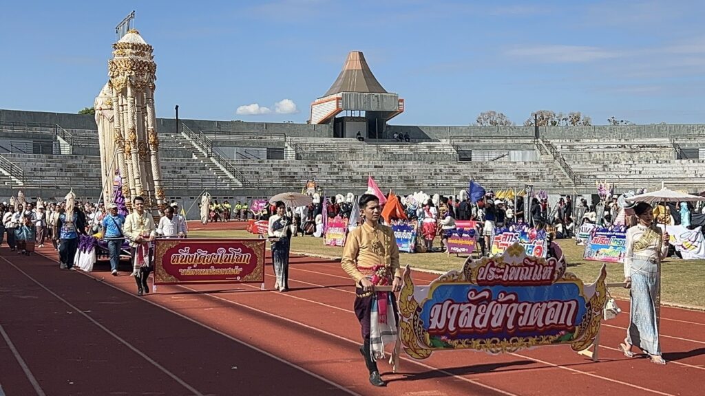 ขบวนที่เดินนำนักกีฬา กองเชียร์ เข้าสู่สนาม ล้วนจัดเป็นสีสันของสถานที่ท่องเที่ยว ของแต่ละจังหวัด นำมาโชว์ เช่น เทียนพรรษา จากจังหวัดอุบลราชธานี, ผีตาโขน และผีขนน้ำ จากจังหวัดเลย, ยักข์คุ ของชานุมาน, ขบวนศูนย์วิทยาศาสตร์ จังหวัดร้อยเอ็ด, หนึ่งเดียวในโลก มาลัยข้าวตอก จากมหาชนะชัย จังหวัดยโสธร, ขบวนแห่นาคโหด กาฬสินธ์, ขบวน ผ้าไทยมหาอำนาจ จาก จังหวัดอำนาจเจริญ ดินแดนหมอลำอีสาน, ขบวนโขงสีปูน มูลสีคราม กับแม่น้ำสองสี ที่โขงเจียม แก่งสะผือ เมืองอุบล ที่มีชื่อเสียง ที่ล่าสุด มี 3 พี่น้อง ชาวฝรั่งต่างชาติ มาตามหา ลุงพูน ปั่นสามล้อ ช่วยเลี้ยงลูกชาวต่างชาติ ช่วงสงครามเวียดนาม และปิดท้าย กับขบวน กีฬา สี่เผ่าไทยศรีสะเกษ อันได้แก่ ส่วย – เขมร – ลาว และเยอ เจ้าภาพในปีนี้ ซึ่งการแข่งขันมีระหว่างวันที่ 2 – 4 กุมภาพันธ์ 2569 นี้ โดยทุกขบวนได้ถือโอกาส ถือป้าย ในการณรงค์ ขอให้ทุกคนออกไปใช้สิทธิ์ เลือกตั้ง เลือกทั้งพรรคที่ชอบ เลือกคนที่ใช้ และไม่ลืมที่จะลงประชามติ ด้วยในวันอาทิตย์ที่ 8 กุมภาพันธ์ 2569 นี้