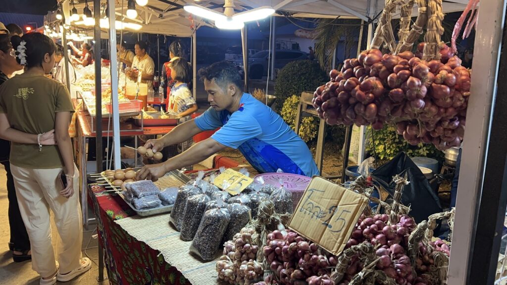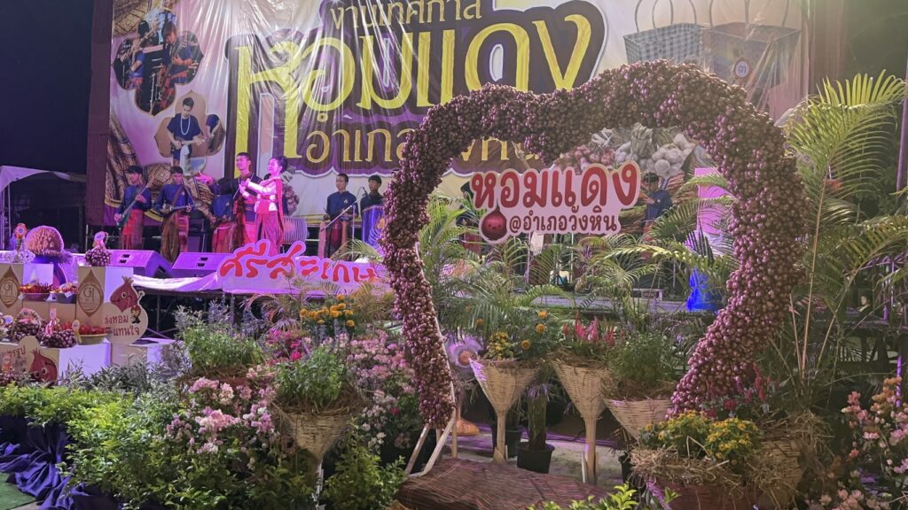 คืนของวันที่ 14 กุมภาพันธ์ 2569 ที่ หน้าที่ว่าการอำเภอวังหิน จังหวัดศรีสะเกษ ได้มีชาวบ้าน เกษตรกร กลุ่มอาชีพ วิสาหกิจชุมชน กลุ่มโครงการโคกหนองนาโมเดล ในเขตอำเภอวังหิน และใกล้เคียง ได้นำสินค้า หัตถกรรมพื้นบ้าน อาหาร พืชผัก ผลิตผลทางการเกษตร มาจัดแสดง และจำหน่าย แก่นักท่องเที่ยว แก่ผู้ที่มาเที่ยวชมงาน เทศกาลหอมแดงอำเภอวังหิน ซึ่งปรากฏว่า ได้มีพี่น้องประชาชนจากทั่วสารทิศ นักท่องเที่ยว ทั้งในประเทศ และต่างประเทศ โดยเฉพาะเขยชาวต่างชาติของสาวอำเภอวังหิน ได้มาเที่ยว มาชม ถ่ายภาพ ส่งกลับไปยังประเทศของตน เพื่อให้ญาติพี่น้องได้รับรู้ รับทราบ ว่า อำเภอวังหิน มีงานหอมแดง สนุกสนาน กับแสดงของวงโปงลาง ดนตรีอีสานพื้นบ้านของศรีสะเกษ ประเทศไทย และอดเต้นด้วยไม่ได้