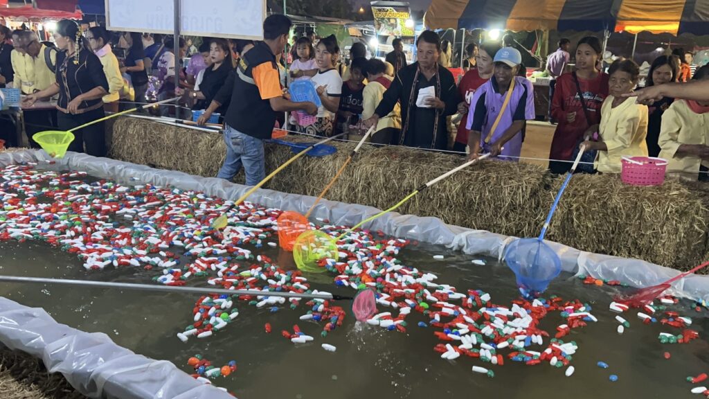 ในการจัดงาน นาย ลิขิต สุขเยาว์ นายอำเภอวังหิน ร่วมกับชมรมกำนัน – ผู้ใหญ่บ้าน ผู้นำท้องที่ ผู้นำท้องถิ่น ร่วมกันจัดขึ้น โดยเฉพาะที่ร้านของชมรมกำนัน – ผู้ใหญ่บ้าน มีกิจกรรมตักมัจฉา พาโชค กับการซื้อบัตร เพียงใบละ 20.-บาท ลุ้นรางวัล พัดลม รถจักรยาน หม้อหุงข้าวไฟฟ้า กระติ๊กน้ำร้อน อื่นๆ อีกมากมาย รายได้ นำเข้ากองทุนช่วยเหลือสังคม ผู้ยากไร้ มีที่เดือดร้อน ในอำเภอวังหิน งานนี้จึงมีผู้มาเข้าแถว ต่อแถว ซื้อบัตร และเข้าไปตักมัจฉาพาโชค ลุ้นรางวัลกันเป็นจำนวนมาก เพราะทั้งได้บุญ ได้ของรางวัล ด้วย