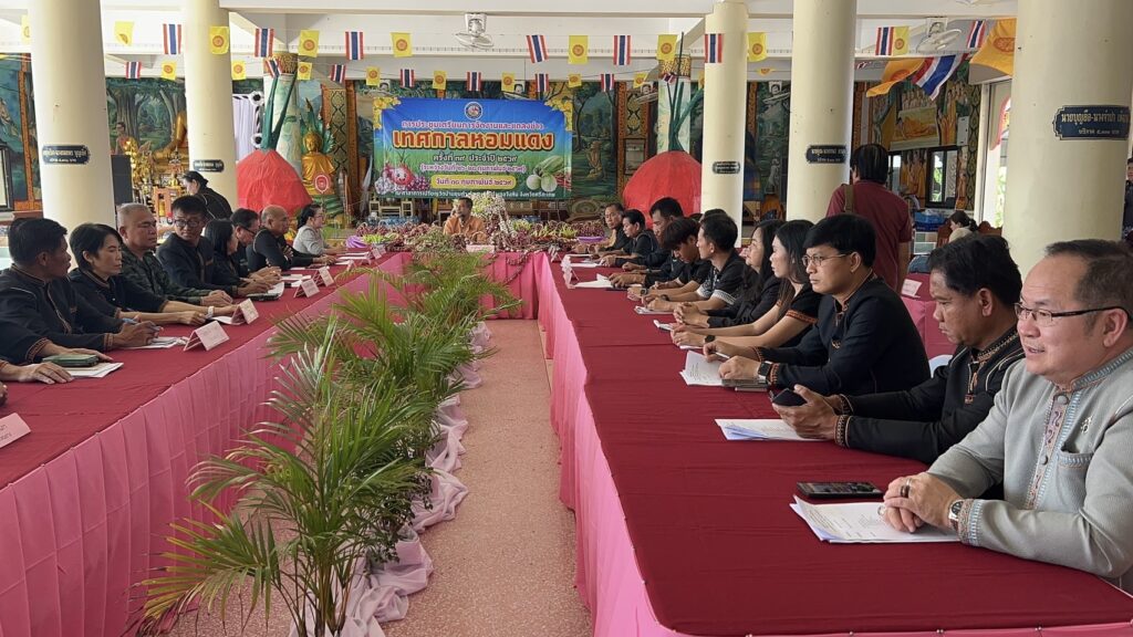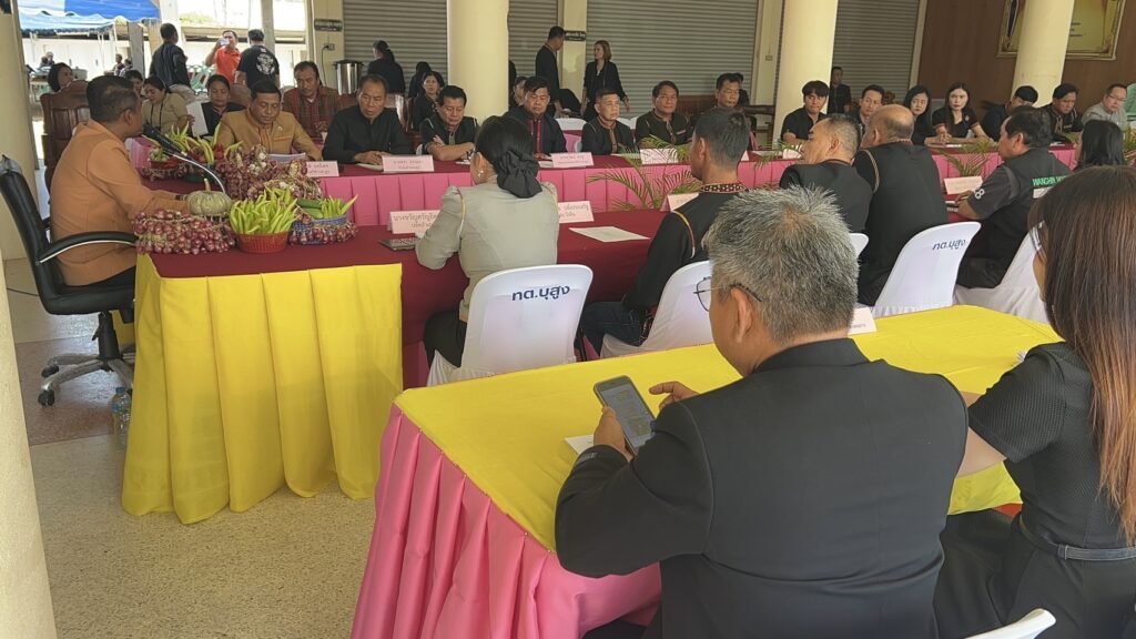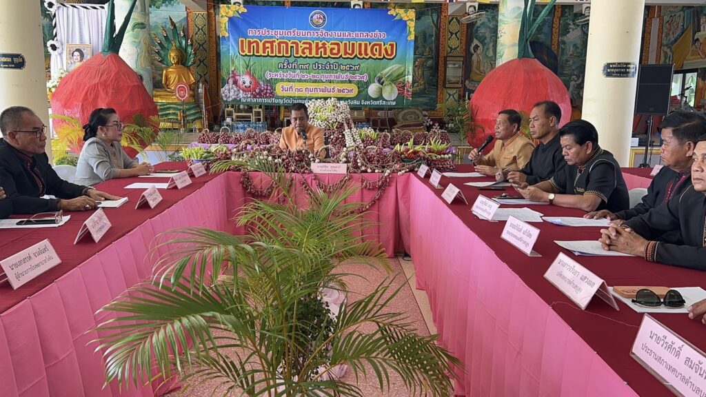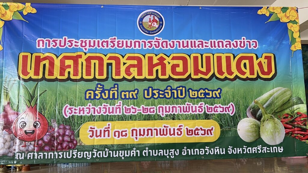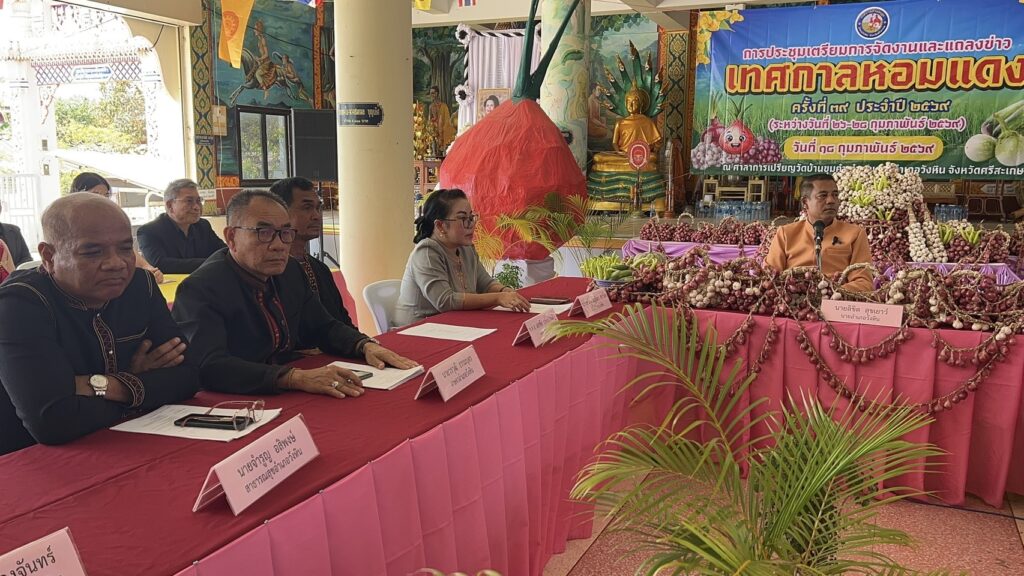 วันที่ 18 กุมภาพันธ์ 2569 ที่ วัดบ้านขุมคำ ตำบลบุสูง อำเภอวังหิน จังหวัดศรีสะเกษ นาย ลิขิต สุขเยาว์ นายอำเภอวังหิน, นาย รักชาติ ฤทธิ์เดช นายก อบต.บุสูง พร้อมด้วยกำนันตำบลบุสูง ผู้ใหญ่บ้านทุกหมู่บ้าน ในตำบลบุสูง, สมาชิก ส.อบต.ทุกท่าน หัวหน้าส่วนราชการ ผู้จัดการธนาคาร ธกส.สาขาวังหิน, ผอ.โรงเรียนระดับประถมศึกษา และมัธยมศึกษา ในเขตอำเภอวังหิน ผู้นำท้องที่ – ท้องถิ่น ชาวบ้านขุมคำ และตำบลบุสูง ได้ร่วมประชุม เพื่อเตรียมการจัดงาน หอมแดงขุมคำ ครั้งที่ 39 ปีที่ 39 เพื่อส่งเสริมการท่องเที่ยว ส่งเสริมการแสดง และการจำหน่ายสินค้า พืชผลทางการเกษตร อธิ พริก, มะเขือ, หอมแดง และกระเทียม รวมทั้งผ้าไหมขุมคำ ข้าวหอมมะลิ ข้าวเหนียวลืมผัว ที่หอม นุ่ม เป็นเอกลักษณ์เฉพาะของชาวหมู่บ้านขุมคำ ชาวอำเภอวังหิน ในระหว่างวันที่ 26 – 28 กุมภาพันธ์ 2569 ณ.วัดบ้านขุมคำ ตำบลบุสูง อำเภอวังหิน จังหวัดศรีสะเกษ