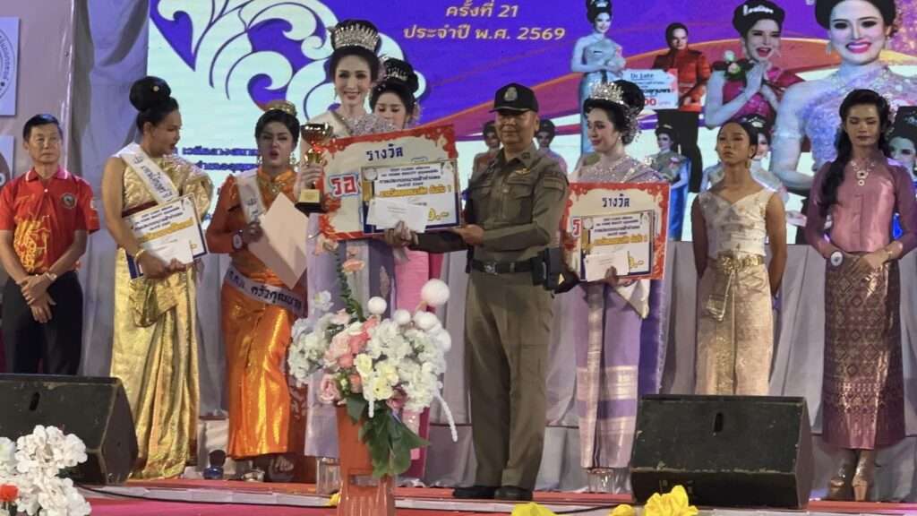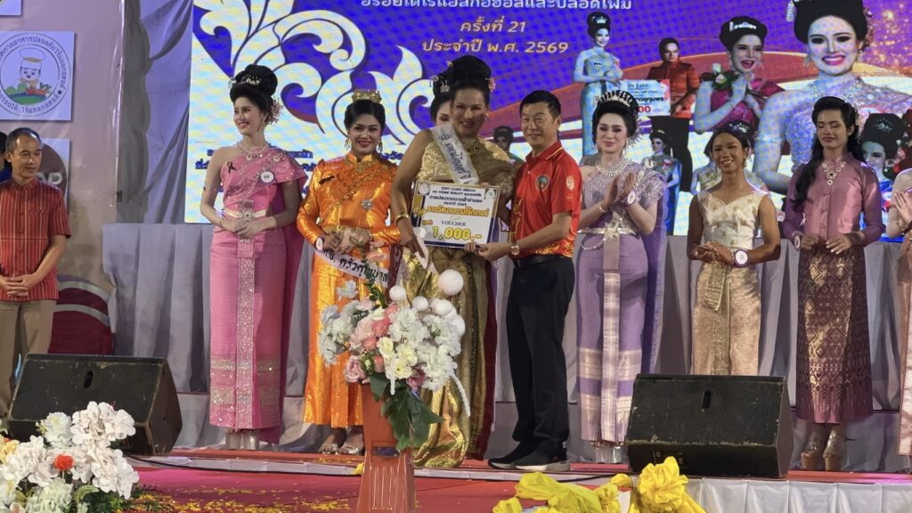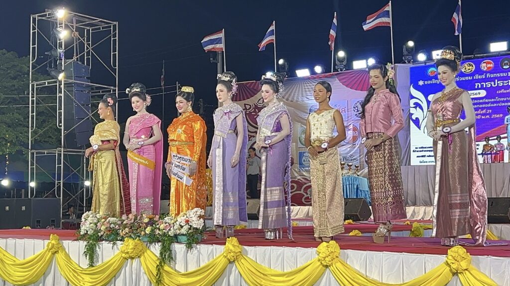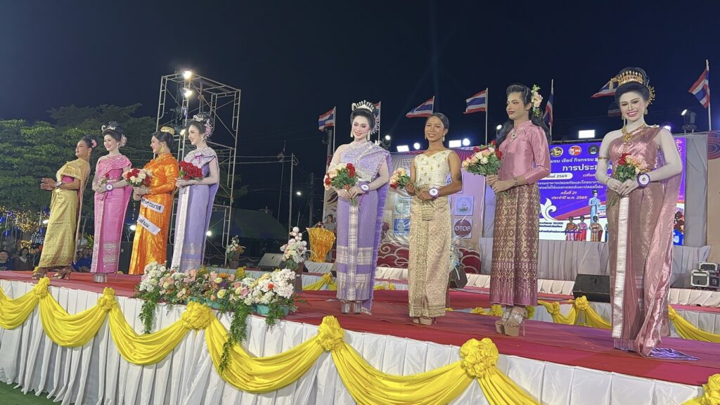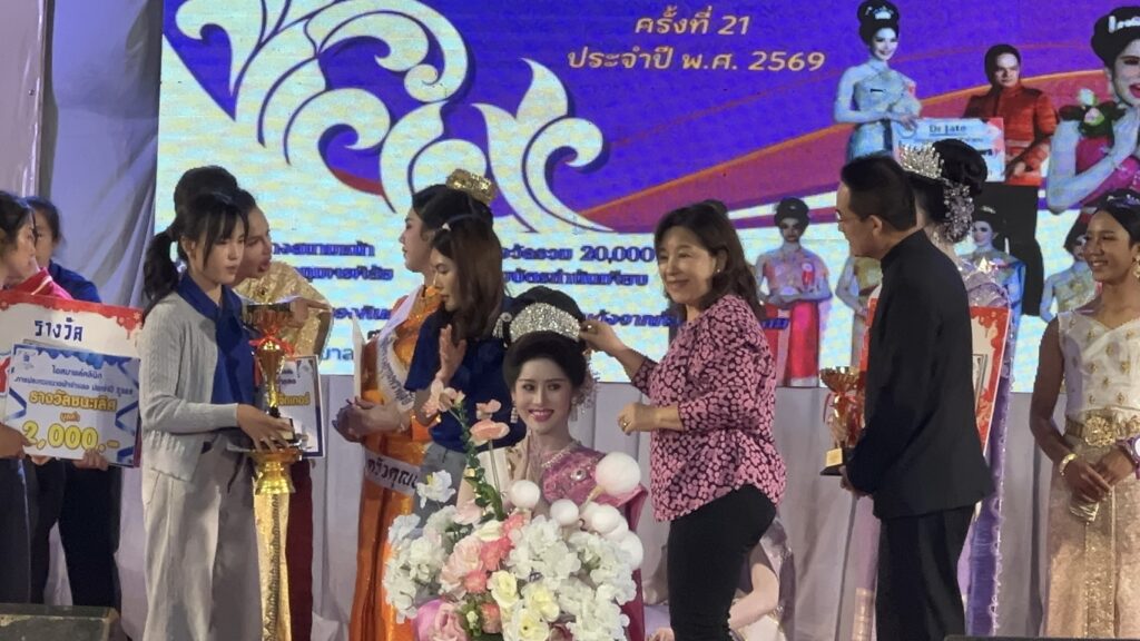 น้องภูมิใจ จากจังหวัดปัตตานี ด้ามขวานของไทย เดินทางไกลกว่า 1,000 กิโล มาคว้ามงกุฎ จากการประกวดนางฟ้าจำแลง ในมหกรรมอาหารปลอดภัย อร่อยได้ไร้แอลกอฮอร์ ที่ อำเภออุทุมพรพิสัย จังหวัดศรีสะเกษ