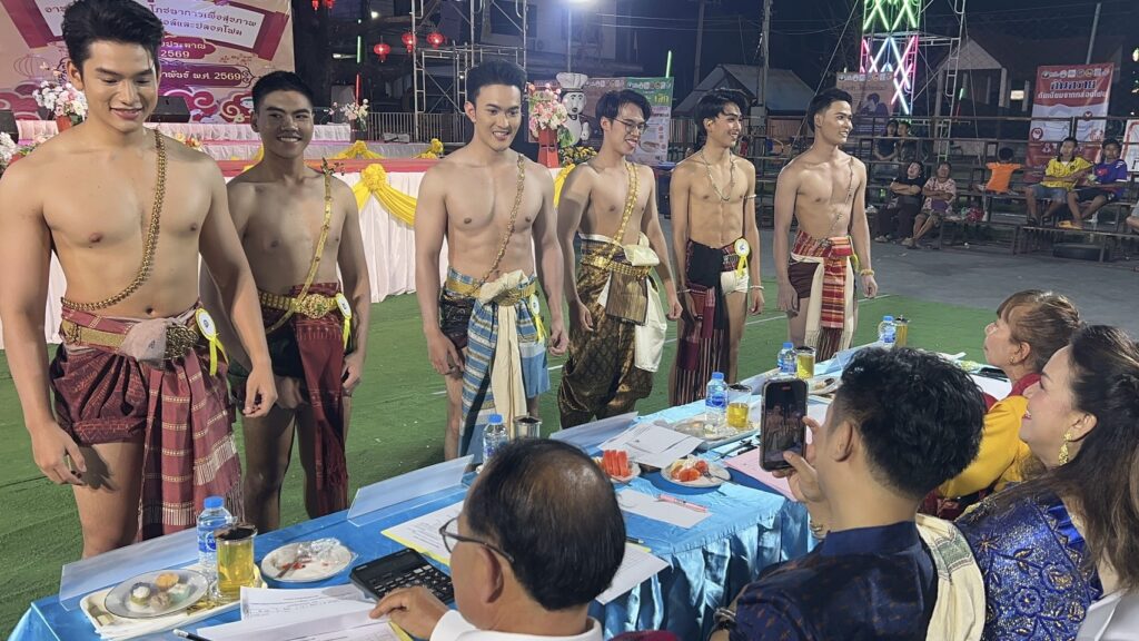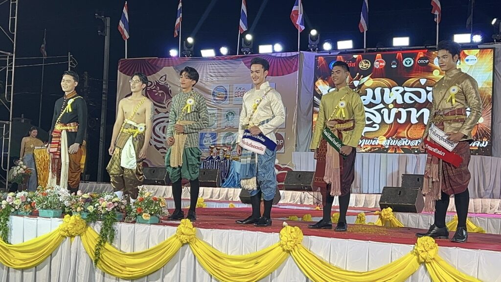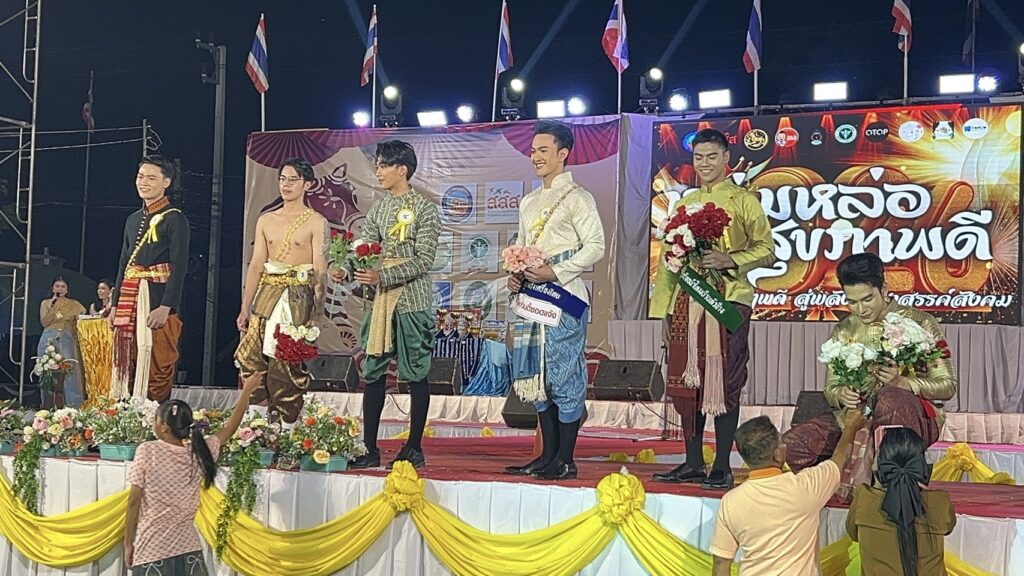 การประกวดหนุ่มหล่อ สุขภาพดี ในงาน มหกรรมอาหารปลอดภัย อร่อยได้ ไร้แอลกอฮอร์ และปลอดโฟม โดยเทศบาลตำบลกำแพง อำเภออุทุมพรพิสัย จังหวัดศรีสะเกษ สาวกรี๊ดสนั่น สุดท้ายหนุ่มใต้หน้าตาดีชนะ