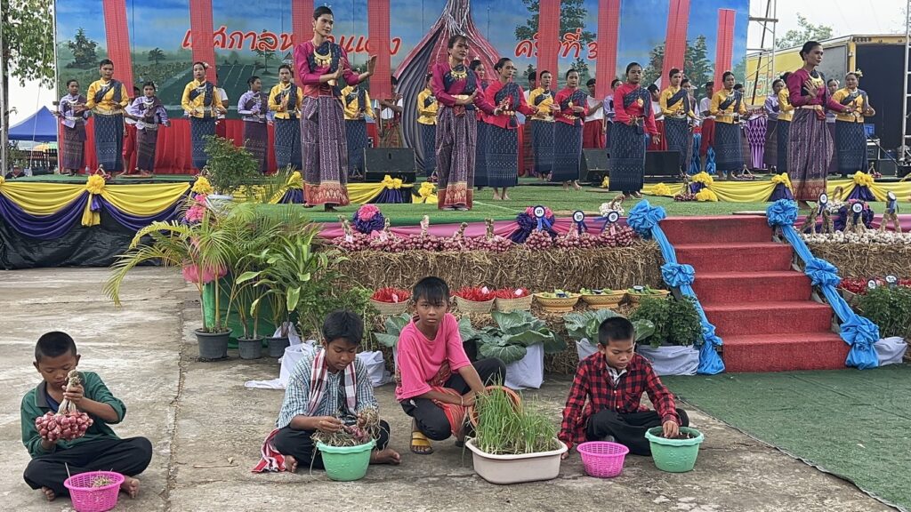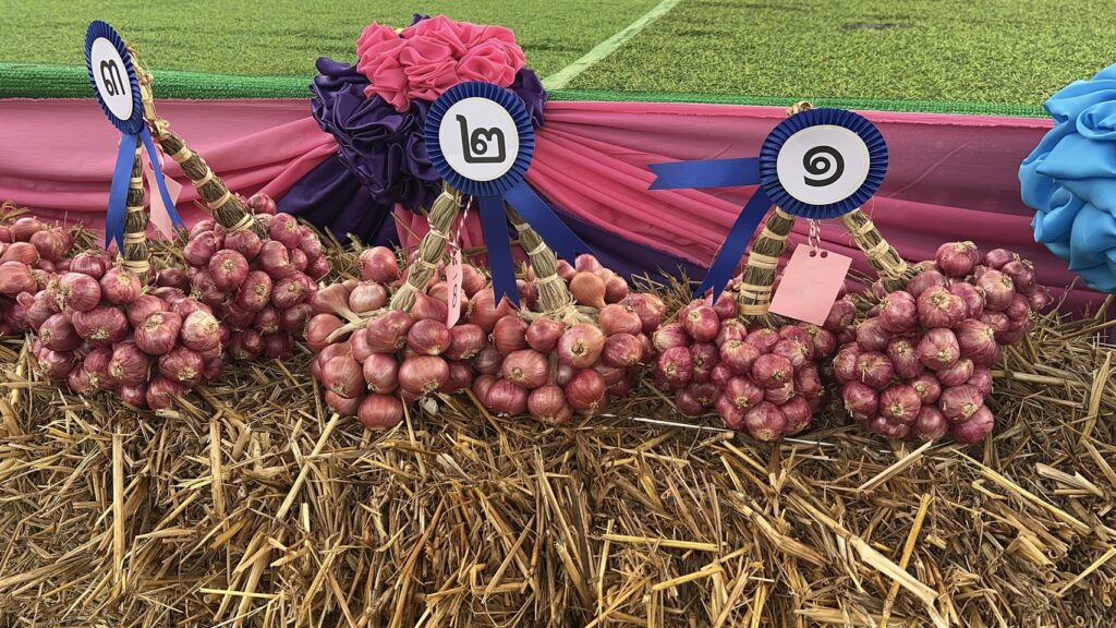 ชาวบ้านขุมคำ จัดสร้างบ้านหอมแดง กระเทียมดี โชว์อวดนักท่องเที่ยว ที่มาเที่ยวชมงาน เทศกาลหอมแดง พร้อมจัดประกวดแข่งขันผลผลิตทางการเกษตร เพื่อรักษาคุณภาพหอมแดง – กระเทียมขุมคำ ไว้ตลอดไป
