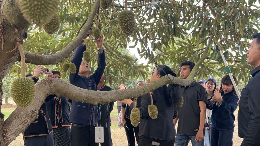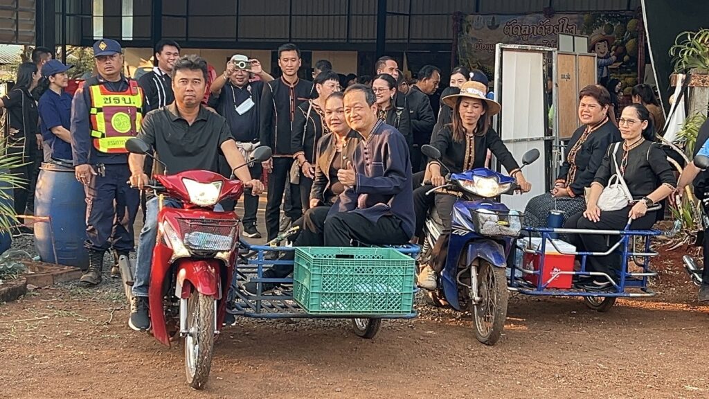 ผู้ว่าราชการจังหวัดศรีสะเกษ นั่งซาเล็งรอบสวนทุเรียนพรีเมี่ยม ตัดลูกทุเรียนส่วนเกิน เพื่อพัฒนาคุณภาพ เสริมราคาทุเรียน GI แฟนคลับทุเรียนภูเขาไฟศรีสะเกษ ปีนี้ได้รับประทานสด ทุเรียนพร้อมทานถึงหน้าบ้าน