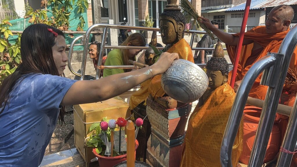 ชาวบ้านในตำบลเมืองจันทร์ อำเภอเมืองจันทร์ จังหวัดศรีสะเกษ ร่วมแห่พระไม้ อายุร้อยปี ไปตามหมู่บ้าน สืบสานประเพณีสรงน้ำพระ รดน้ำดำหัวผู้สูงอายุ เด็กเยาวชน เริ่มวันวันสงกรานต์ ปีใหม่ไทย แบบดั่งเดิม