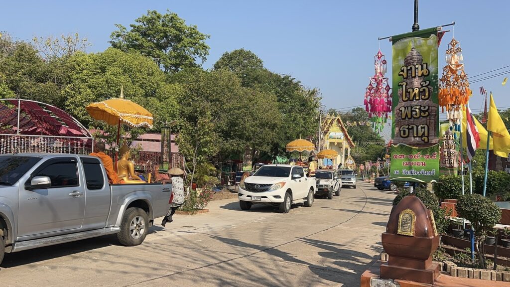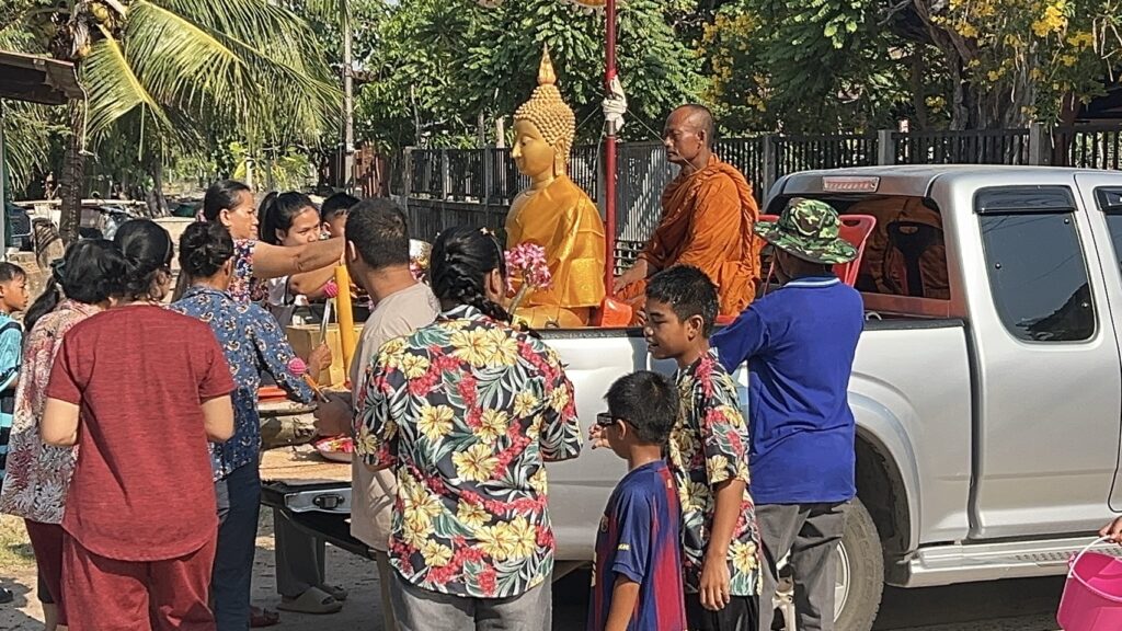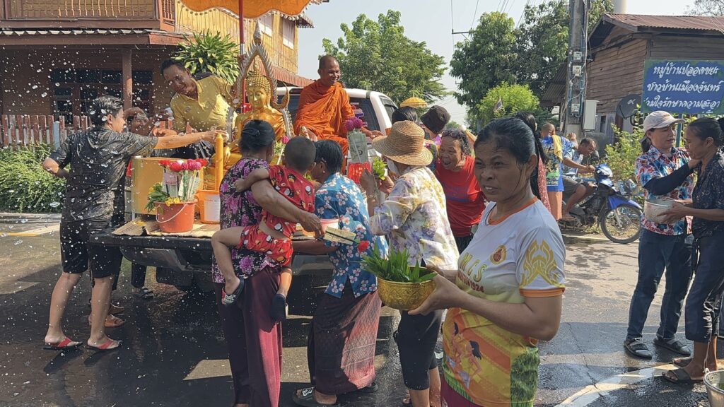 วันที่ 12 เมษายน 2569 ชาวบ้านภาคอีสาน ถือว่าเป็นวันเนา หรือ ที่ชาวหมู่บ้าน ชุมชนอีสาน จังหวัดศรีสะเกษ ของชน 4 เผ่า อันได้แก่ เผ่าส่วย หรือกูย เช่น ชาวบ้านเมืองจันทร์ แห่งนี้ นอกนั้นก็จะมี เผ่าเขมร, เผ่าเยอ และเผ่าลาว เรียกกันว่า วันก่อนปีใหม่ไทย ช่วงเทศกาลมหาสงกรานต์ ประชาชนชาวบ้านเมืองจันทร์ ได้ร่วมจัดขบวนแห่ พระไม้โบราณ อายุรวม 100 ปี ตระเวนไปตามชุมชน หมู่บ้านต่างๆ เพื่อเปิดโอกาสให้พี่น้องประชาชน ที่มีวันหยุดในช่วงเทศกาลสงกรานต์ พึ่งเดินทางกลับมาบ้าน ได้ร่วมสรงน้ำพระสงฆ์ ของพรพระพุทธรูป พระประธาน โดยเฉพาะพระพุทธรูปไม้แกะสลัก พระไม้โบราณ อันเก่าแก่ อายุมากกว่า 100 ปี ซึ่งถือว่าเป็นมิ่งมงคล ของชาวอำเภอเมืองจันทร์ จังหวัดศรีสะเกษ พร้อมยังได้เปิดโอกาส ให้ผู้สูงอายุ นำลูกหลาน เหลน ออกมาเล่นน้ำสงกรานต์กัน ตามประเพณี ที่มีการขออนุญาตก่อนรดน้ำ ที่มีการรดน้ำขอพรจากผู้ใหญ่ และคุณตาคุณยาย ผู้สูงอายุ ผู้ป่วยได้พบปะเพื่อนบ้าน พบพระสงฆ์ ร่วมทำบุญรวมญาติ ก็ถือโอกาสรดน้ำดำหัวซึ่งกันและกัน บรรยากาศเช่นนี้หาชมได้ยาก ที่เป็นไปด้วยความชื่นมื่น ยิ้มเริงร่า เต็มไปด้วยเสียงหัวเราะกันตั้งแต่เช้าของวันนี้ ปีหนึ่งจะเกิดขึ้นสักครั้งหนึ่ง ในหมู่บ้าน ชุมชน ของอำเภอเมืองจันทร์ จังหวัดศรีสะเกษ โดยมี พระครู สุวัจน์จันทคุณ เจ้าคณะตำบลเมืองจันทร์ – เจ้าอาวาสวัดเมืองจันทร์ นำคณะสงฆ์จากวัดเมืองจันทร์ ชาวบ้าน – ตำบล เมืองจันทร์ นำสืบสานประเพณีวัฒนธรรม ของชนเผ่ากูย หรือ ส่วย  ที่สืบทอดมาแต่อดีต ที่ดีงามเช่นนี้เอาไว้มา ตลอดระยะเวลา มากว่า 30 ปีแล้ว