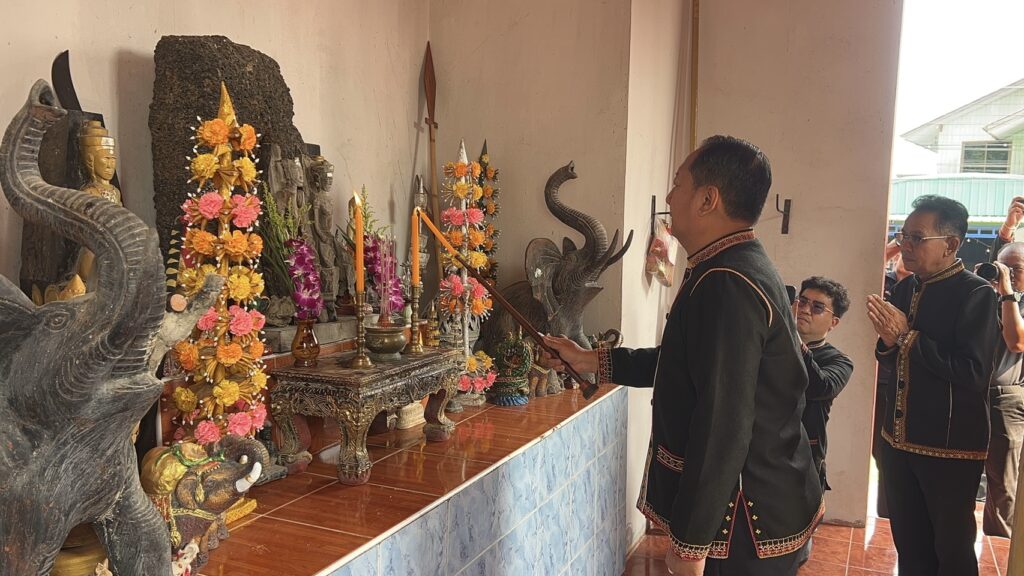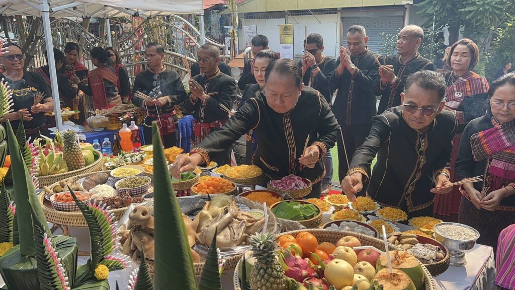 โดยในวันนี้ได้มีพี่น้องประชาชน ที่เป็นลูกหลานตากะจะ ทั้งในเขตตำบลดวนใหญ่ และอำเภอวังหิน นำโดย นาย วิจิตร ใสกระจ่าง นายก อบต.ดวนใหญ่ ได้ร่วมกันจัดเครื่องเซ่นไหว้ ออกมาประกอบพิธี โดยมีพ่อพราหมณ์ นำกล่าวขอขมา อัญเชิญดวงวิญญาณของบรรพบุรุษ ทุกๆ คน โดยเฉพาะตากะจะ มารับเครื่องเซ่นไหว้ ที่ลูกหลานพากันนำมาถวายในครั้งนี้ และขอพรให้ลูกหลาน อยู่เย็นเป็นสุข ทำมาค้าขายก็ขอให้ร่ำรวย ประกอบกิจการงานใดก็จงสำเร็จๆ ทุกประการ ทั้งนี้ได้มี นาย สุกิจ เหลืองสกุลไทย รองผู้ว่าราชการจังหวัดศรีสะเกษ มาเป็นประธานนำไหว้ ผูกผ้า 7 สี ศาลหลักเมืองไม้เก่าโบราณ นำจุดธูปเทียน โปรยดอกไม้ ถวายเครื่องเซ่นไหว้ พร้อมกล่าวขอบคุณ ลูกหลาน ตากะจะ ที่ทุกคนได้รำลึกถึงบรรพบุรุษ นับเป็นการแสดงออกถึงความกตัญญูต่อบรรพบุรุษ ที่สร้างบ้านเมือง ปกป้องให้ลูกหลาน ได้อยู่กันอย่างสงบร่มเย็นตลอดไป