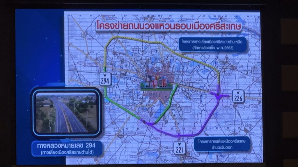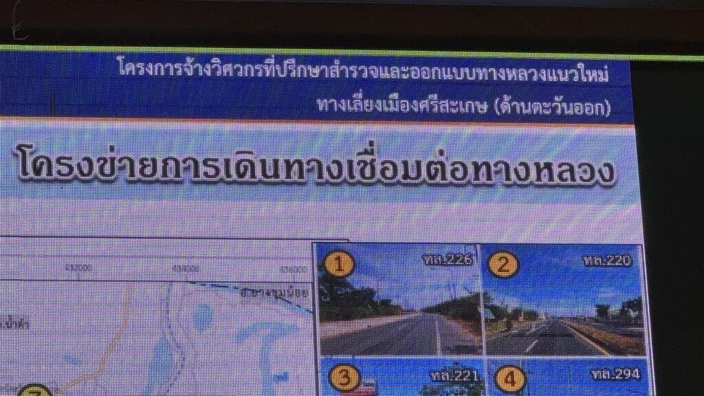 วันที่ 24 เมษายน 2569 ที่ ห้องประชุมชั้น2 โรงแรมแกลเลอรี่ ดีไซน์ อำเภอเมือง จังหวัดศรีสะเกษ นาย ทวีศักดิ์ รุ่งพาณิชกุล รองผู้ว่าราชการจังหวัดศรีสะเกษ เป็นประธานในการประชุมหารือ เปิดเวทีสาธารณะ เพื่อหาข้อสรุปในการศึกษา ออกแบบ ของบริษัทเอกชน โครงการจ้างวิศวกรที่ปรึกษาสำรวจและออกแบบทางหลวงแนวใหม่ ทางเลี่ยงเมือง ทิศตะวันออก ที่ได้รับการเสนอโครงการ ก่อสร้างถนนเลี่ยงเมืองศรีสะเกษ ทางทิศตะวันออก ระยะทาง 8 กิโลเมตร กับงบประมาณ 2,500 ล้านบาท กับขนาดของพื้นที่ ที่จะก่อสร้างเวรคืน ขนาดความกว้าง 60 เมตร กับถนน 4 เลนช่องการจราจร โดยได้มีประชาชน ผู้ที่ได้รับผลกระทบ ที่จะต้องถูกเวนคืนที่ดิน ที่ทำกิน จำนวน 242 แปลง ในเขตตำบลหนองครก, ตำบลชำ, ตำบลโพนข่า, ตำบลหนองแก้ว และตำบลโพธิ์ ที่มีทั้งที่ดิน ที่เป็นโฉนดที่ดิน, น.ส.3 ก., น.ส.3, และท.ด. เพื่อมารับฟังการชี้แจงของตัวแทนบริษัท ที่รับเหมาสำรวจและออกแบบทางหลวงแนวใหม่ นี้
